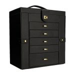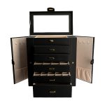 Cutia de bijuterii Landis este un cadou ideal pentru femei, aducand atat functionalitate, cat si eleganta in organizarea accesoriilor preferate. Realizata din piele ecologica de culoare neagra, aceasta cutie este rafinata si versatila, potrivindu-se perfect in orice decor. Organizarea bijuteriilor devine mult mai simpla si placuta, permitandu-ti sa gasesti usor colierele, inelele, cerceii sau bratarile preferate, fara a pierde timp.