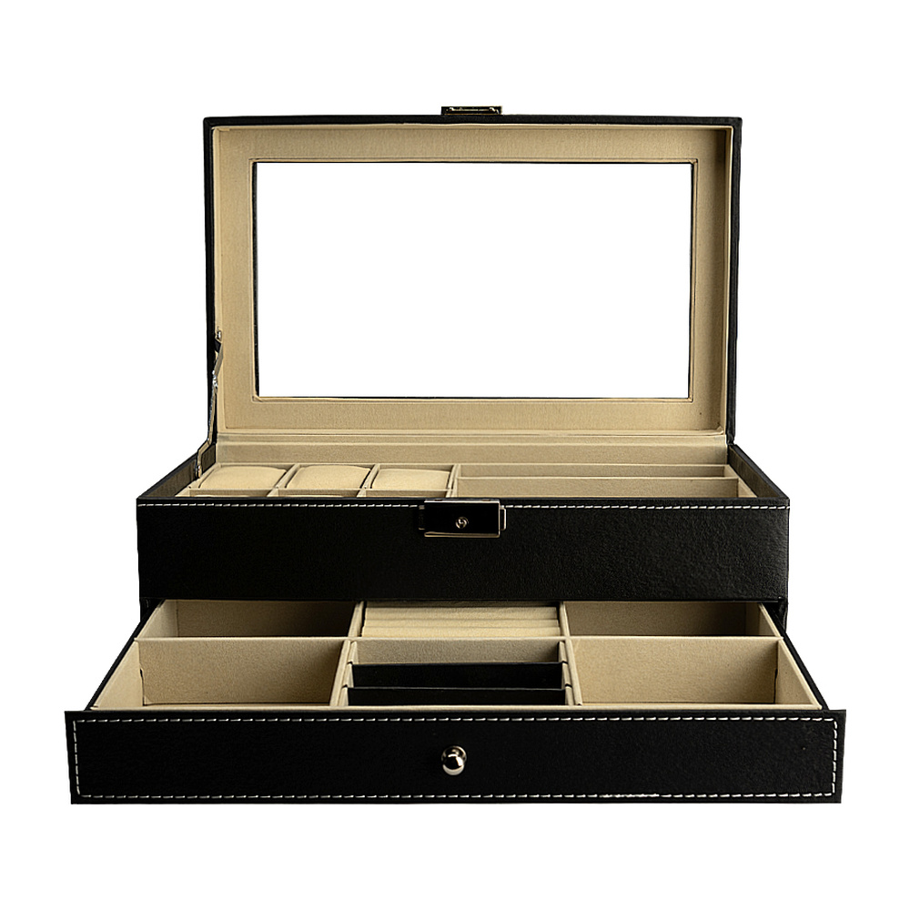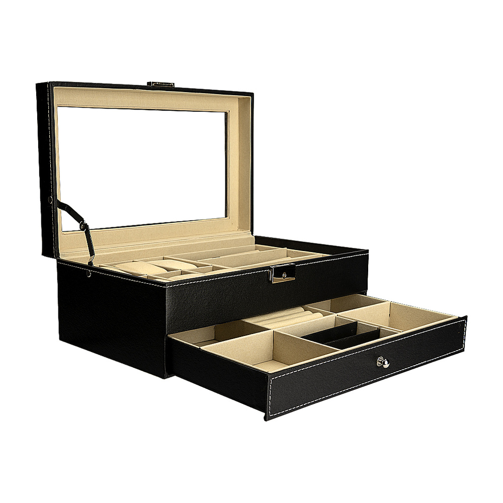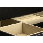 Cutia de bijuterii Sven este un cadou ideal pentru femei, aducand atat functionalitate, cat si eleganta in organizarea accesoriilor preferate. Realizata din piele ecologica de culoare neagra, aceasta cutie este rafinata si versatila, potrivindu-se perfect in orice decor. Organizarea bijuteriilor devine mult mai simpla si placuta, permitandu-ti sa gasesti usor colierele, inelele, cerceii sau bratarile preferate, fara a pierde timp.